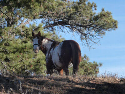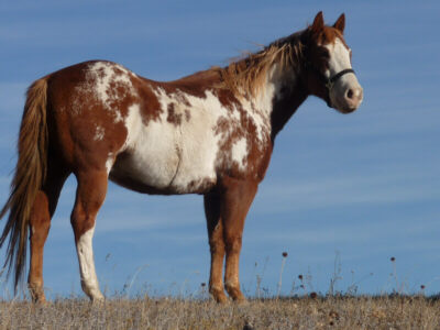overo paint gelding with a beautiful flaxen mane and dark eyes surrounded